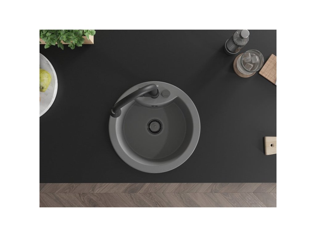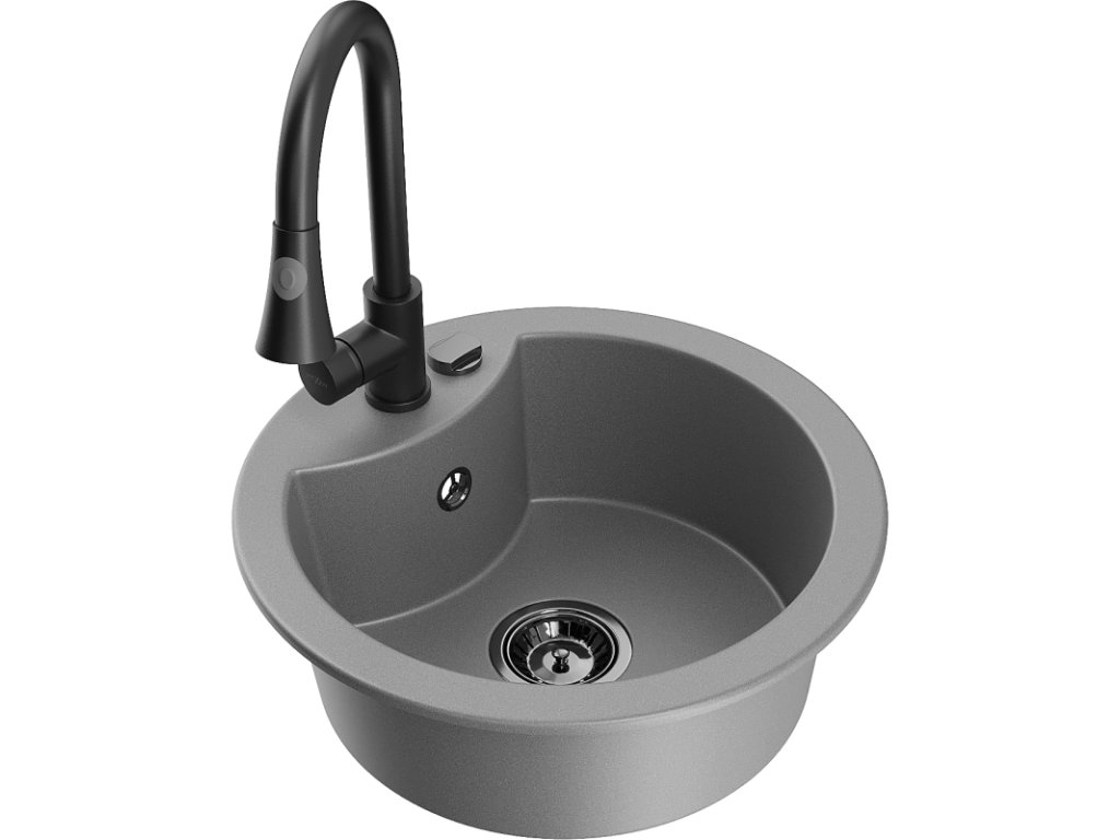 Granitový drez Mexen Diego s 1 misou a kuchynskou batériou Elia, sivý - 6512-71-670101-70-B