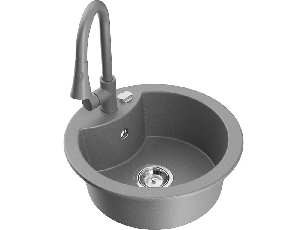 Granitový drez Mexen Diego s 1 misou a kuchynskou batériou Elia, sivý - 6512-71-670101-71