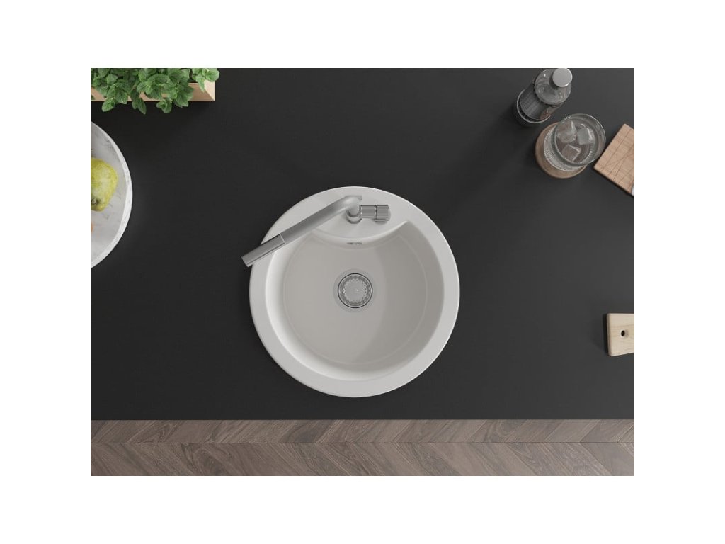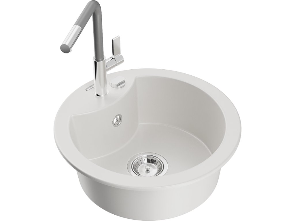 Granitový drez Mexen Diego s 1 misou a kuchynskou batériou Flora, biely - 6512-20-670401-06