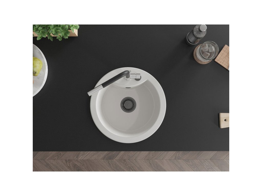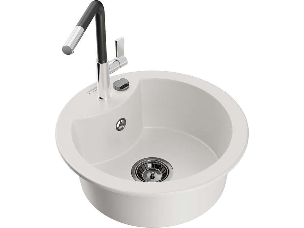 Granitový drez Mexen Diego s 1 misou a kuchynskou batériou Flora, biely - 6512-20-670401-07-B