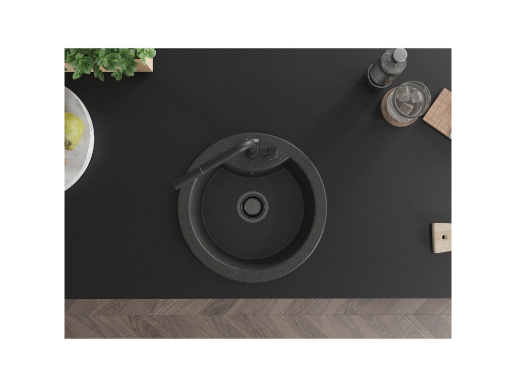 Granitový drez Mexen Diego s 1 misou a kuchynskou batériou Flora, čierna škvrnitá - 6512-76-670401-70-B