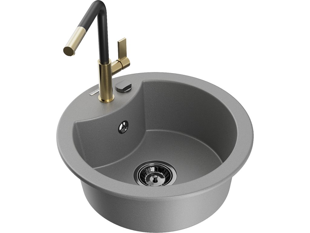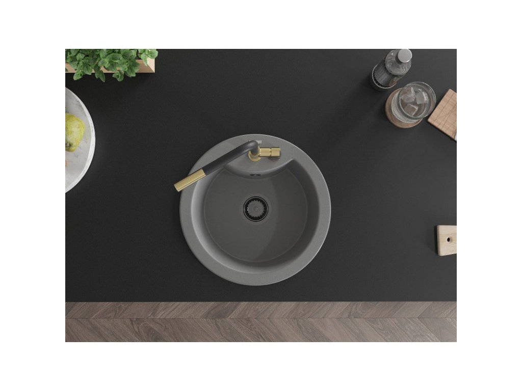Granitový drez Mexen Diego s 1 misou a kuchynskou batériou Flora, sivý - 6512-71-670401-57-B