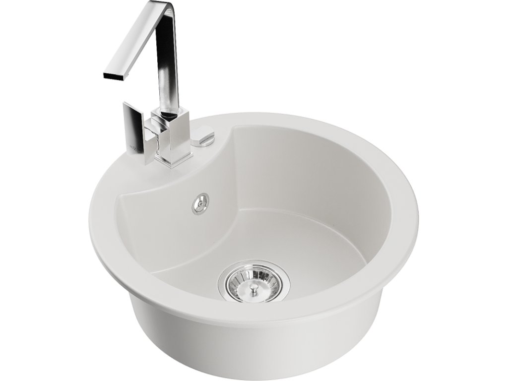 Granitový drez Mexen Diego s 1 misou a kuchynskou batériou Rita, biely - 6512-20-670300-00