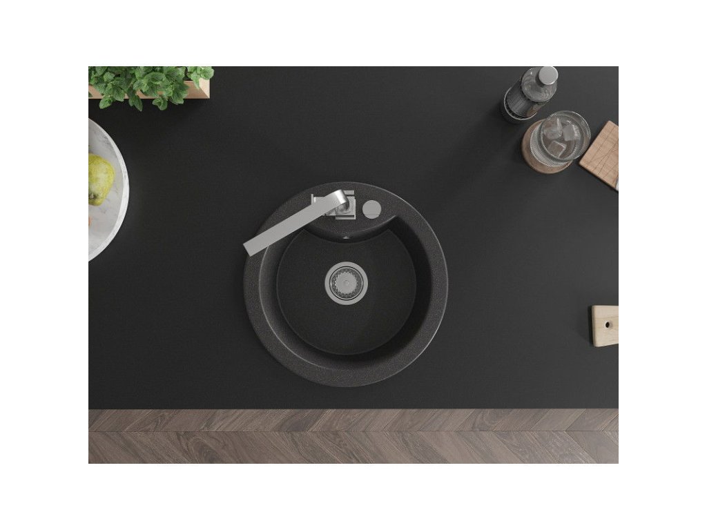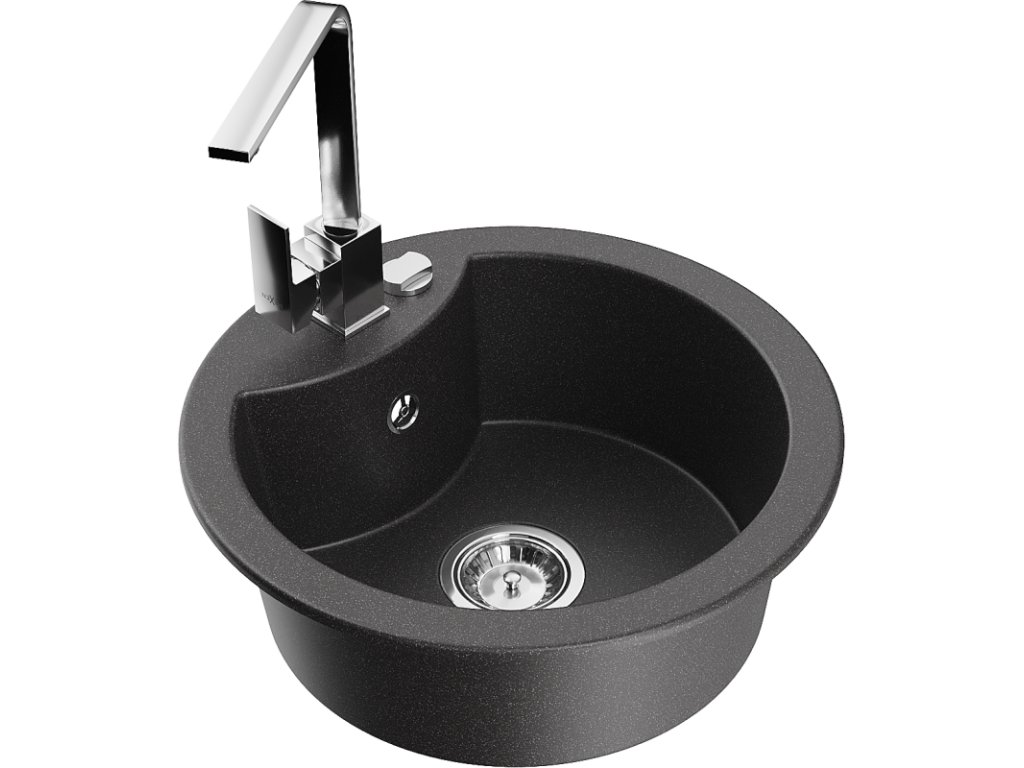 Granitový drez Mexen Diego s 1 misou a kuchynskou batériou Rita, čierna škvrna - 6512-76-670300-00