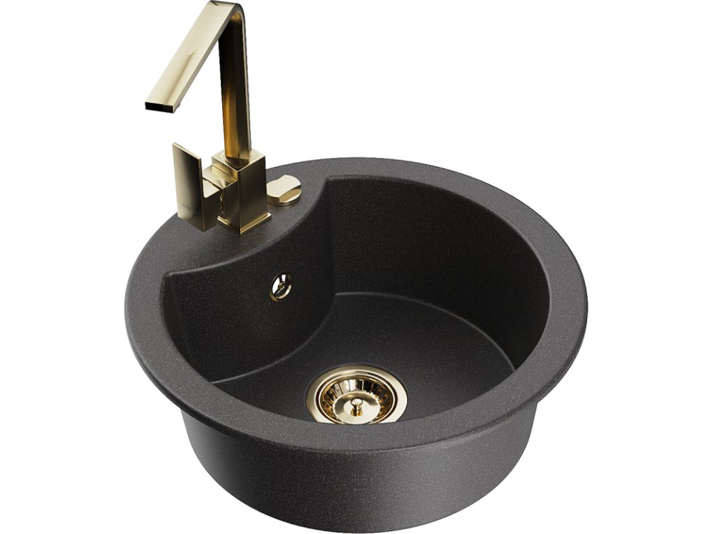 Granitový drez Mexen Diego s 1 misou a kuchynskou batériou Rita, čierna škvrna - 6512-76-670300-50