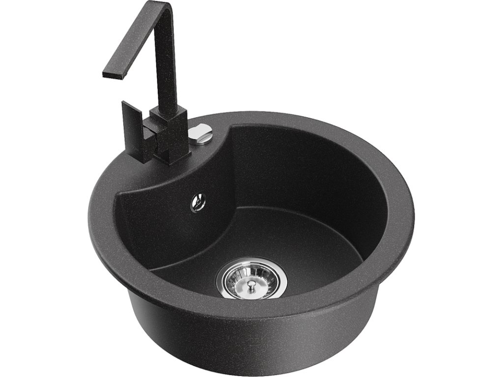 Granitový drez Mexen Diego s 1 misou a kuchynskou batériou Rita, čierna škvrnitá - 6512-76-670300-76