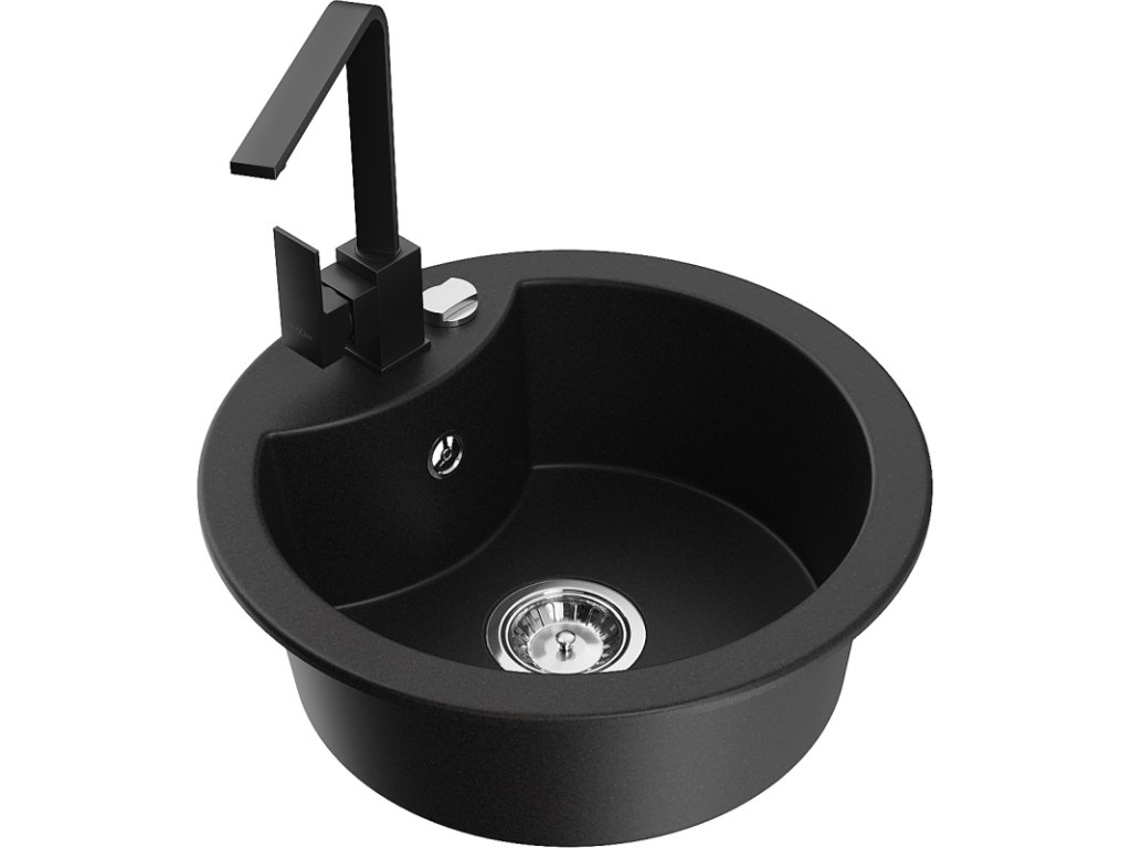 Granitový drez Mexen Diego s 1 misou a kuchynskou batériou Rita, čierny - 6512-77-670300-70