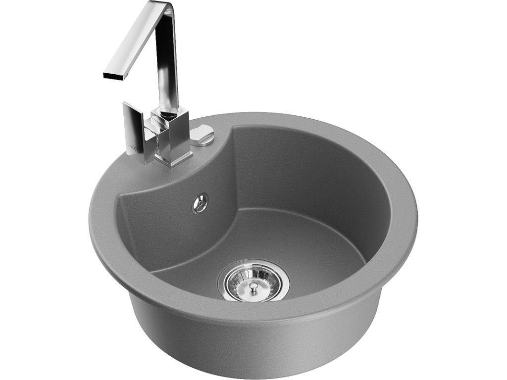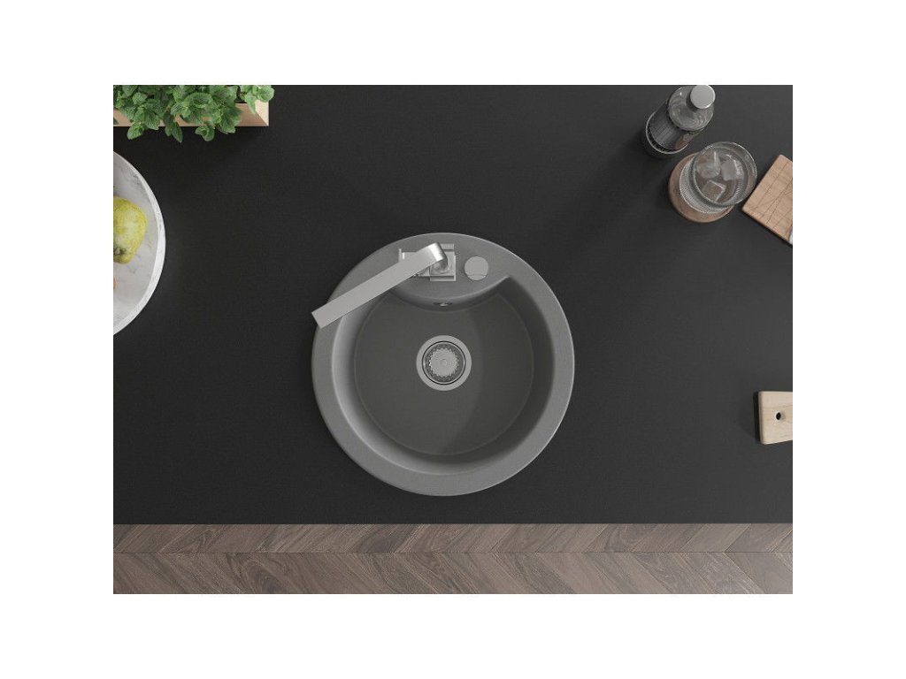 Granitový drez Mexen Diego s 1 misou a kuchynskou batériou Rita, sivý - 6512-71-670300-00