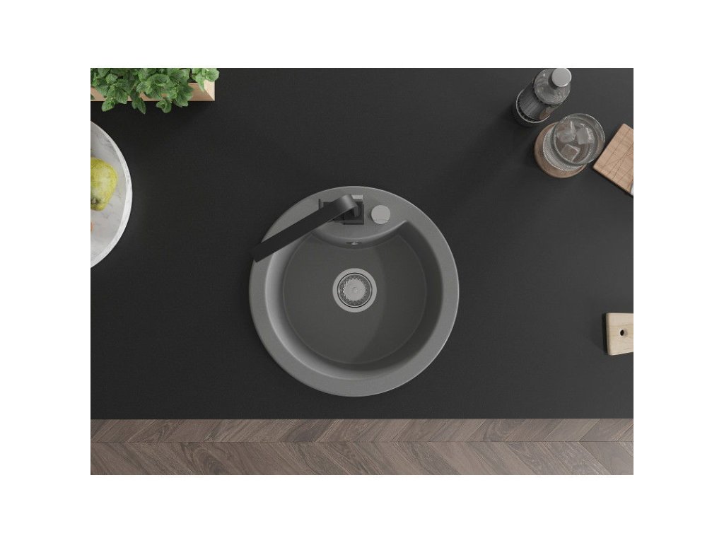 Granitový drez Mexen Diego s 1 misou a kuchynskou batériou Rita, sivý - 6512-71-670300-70