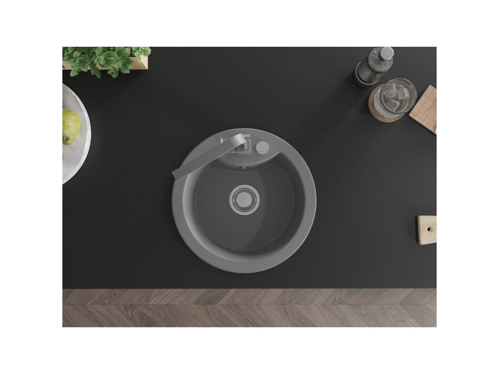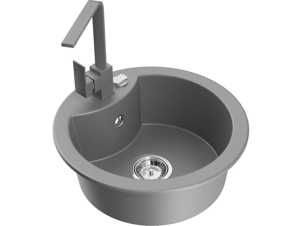 Granitový drez Mexen Diego s 1 misou a kuchynskou batériou Rita, sivý - 6512-71-670300-71