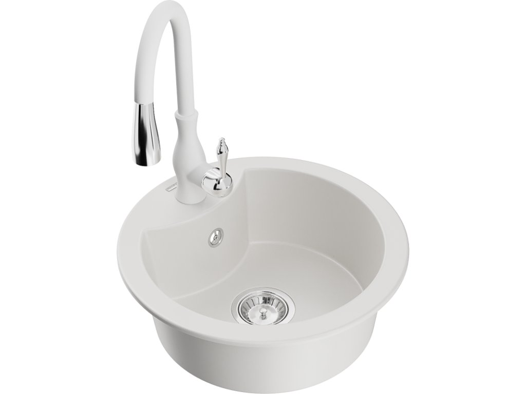 Granitový drez Mexen Diego s 1 misou a kuchynskou batériou Savita, biely - 6512-20-672601-20