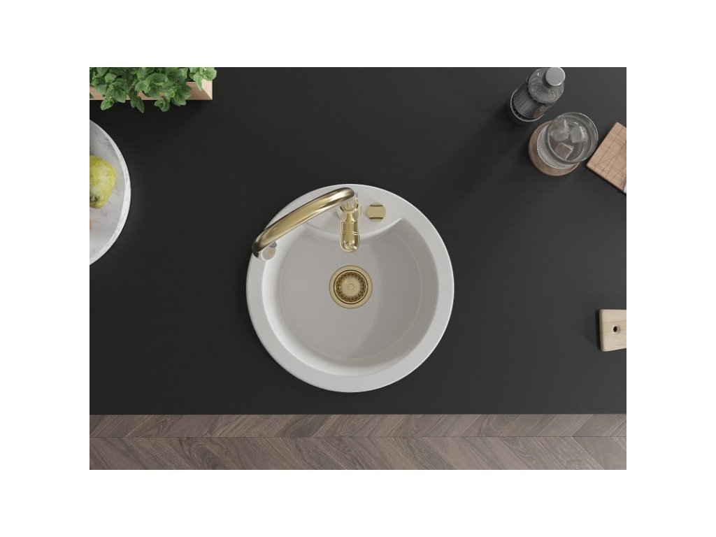 Granitový drez Mexen Diego s 1 misou a kuchynskou batériou Savita, biely - 6512-20-672601-50