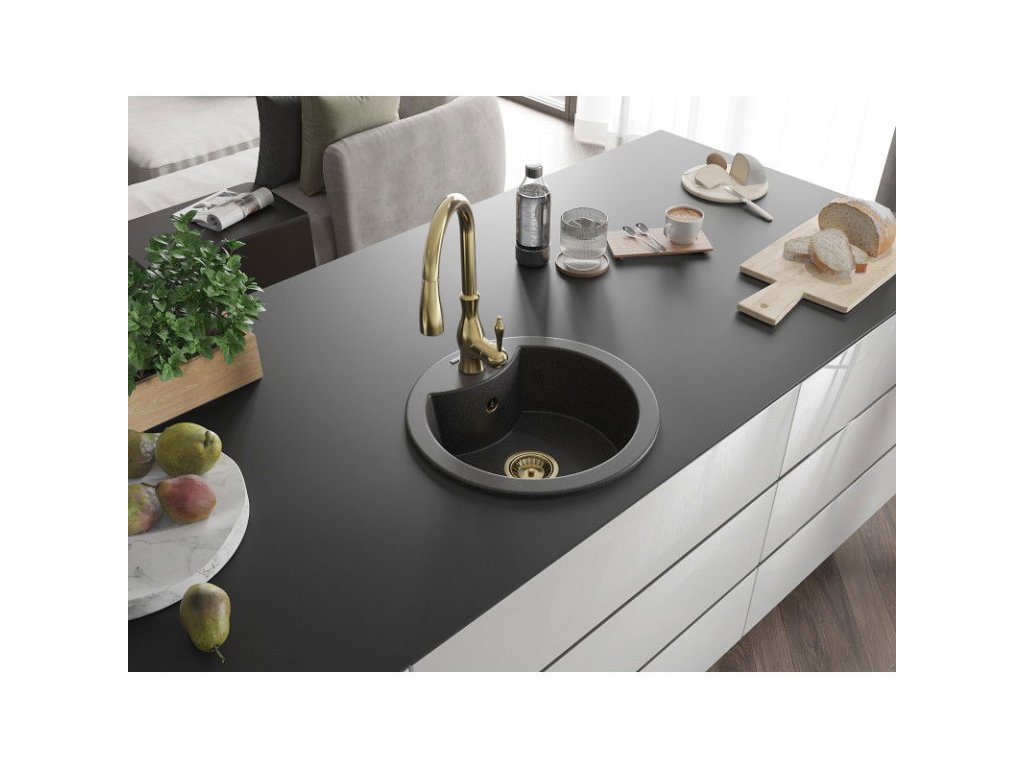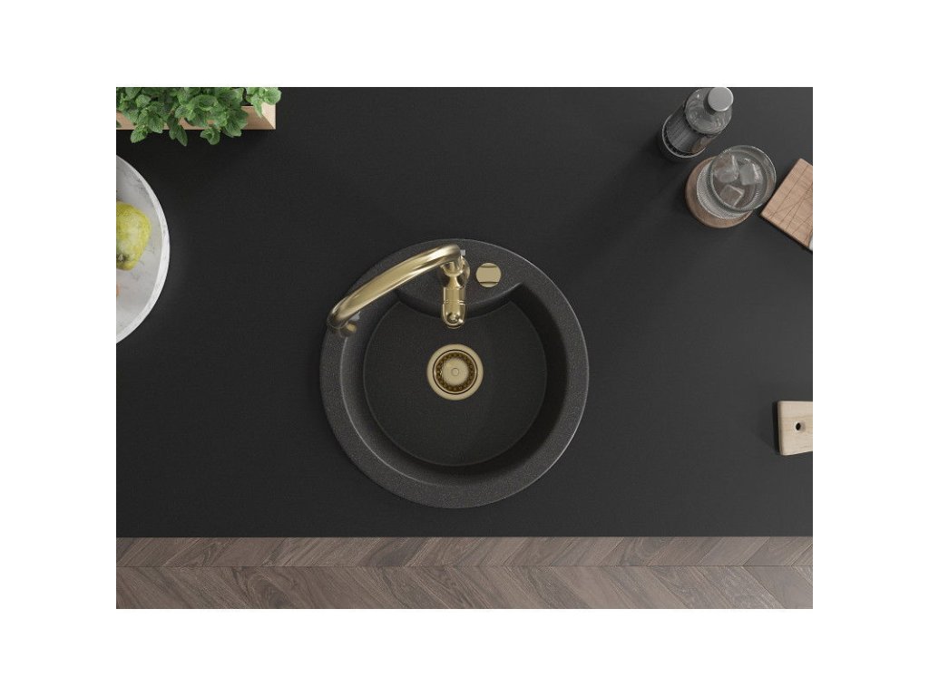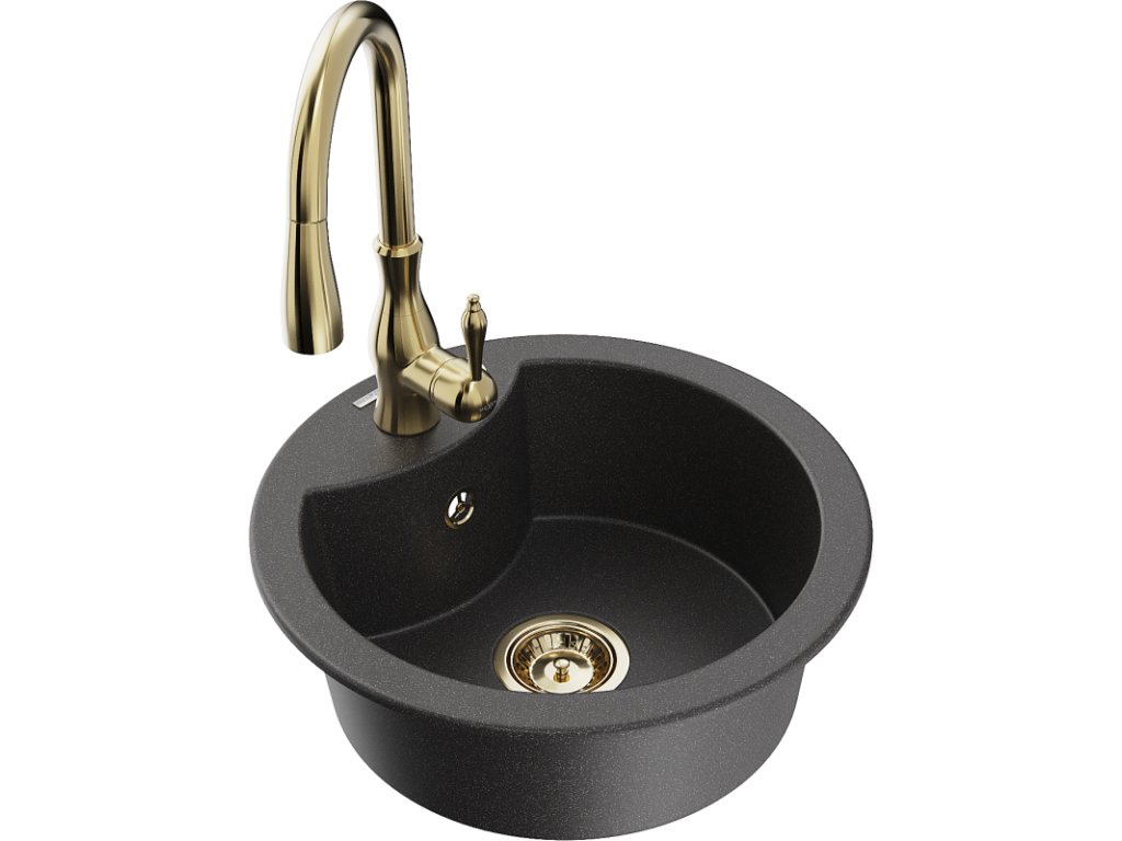 Granitový drez Mexen Diego s 1 misou a kuchynskou batériou Savita, čierna škvrnitá - 6512-76-672601-50