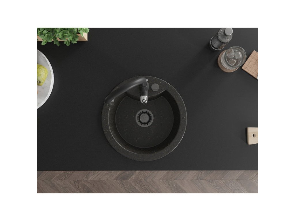 Granitový drez Mexen Diego s 1 misou a kuchynskou batériou Savita, čierna/zlatá metalíza - 6512-75-672601-70-B