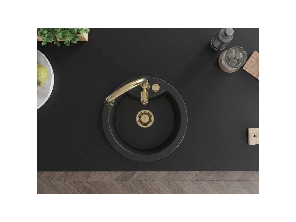Granitový drez Mexen Diego s 1 misou a kuchynskou batériou Savita, čierny - 6512-77-672601-50