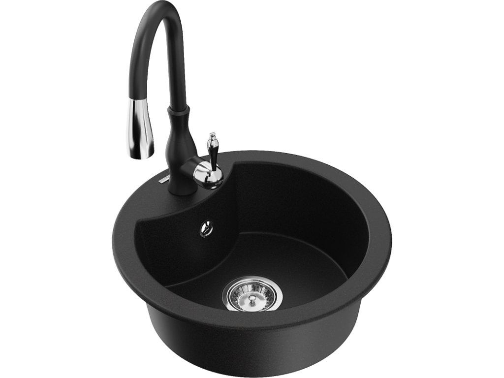 Granitový drez Mexen Diego s 1 misou a kuchynskou batériou Savita, čierny - 6512-77-672601-70