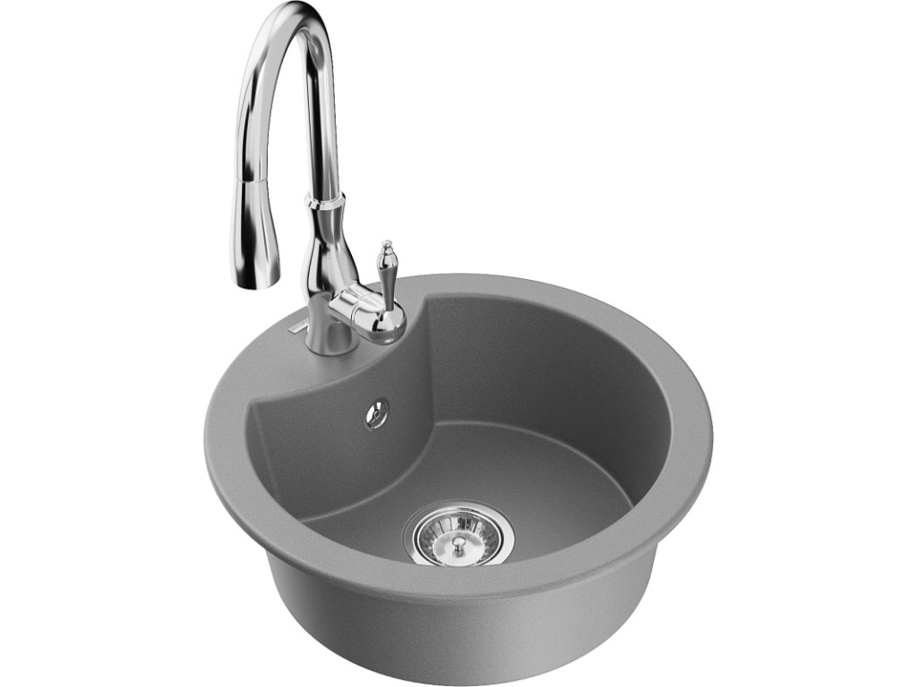 Granitový drez Mexen Diego s 1 misou a kuchynskou batériou Savita, sivý - 6512-71-672601-00