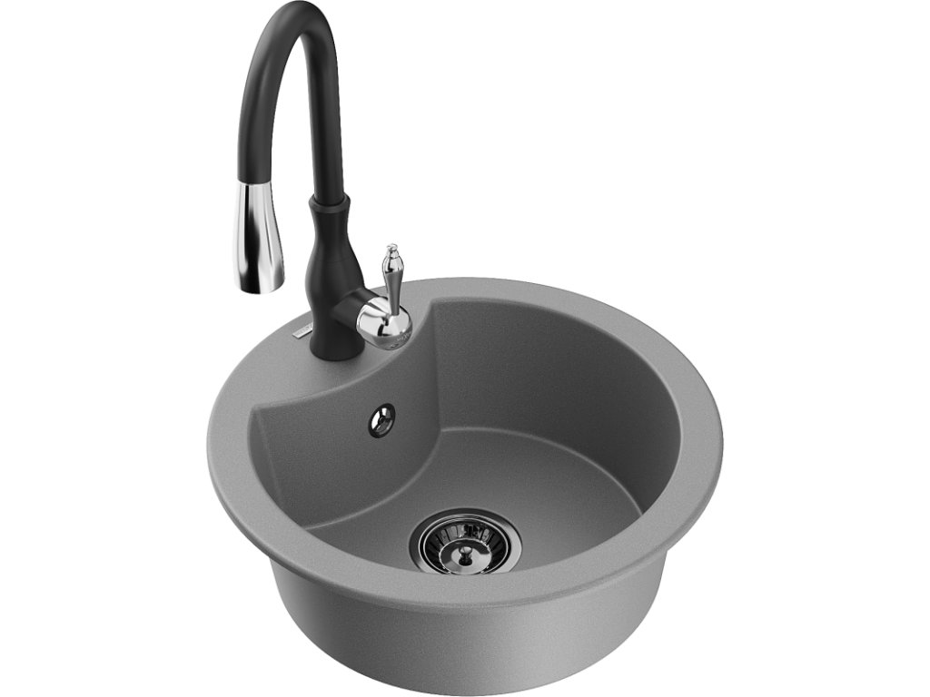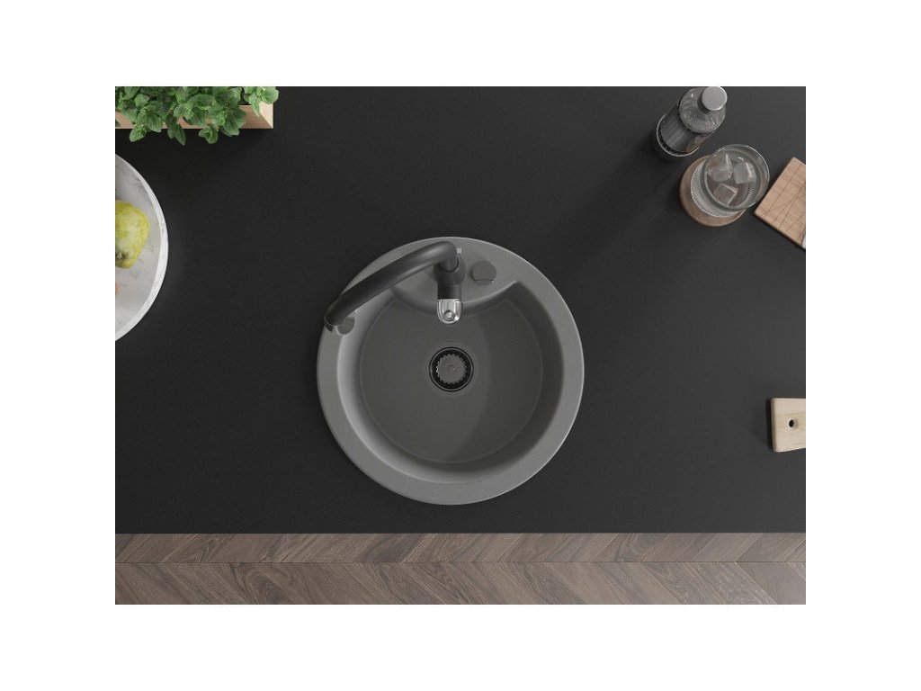 Granitový drez Mexen Diego s 1 misou a kuchynskou batériou Savita, sivý - 6512-71-672601-70-B