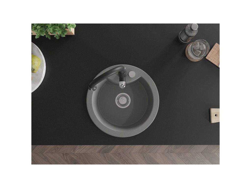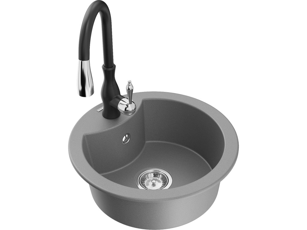 Granitový drez Mexen Diego s 1 misou a kuchynskou batériou Savita, sivý - 6512-71-672601-70