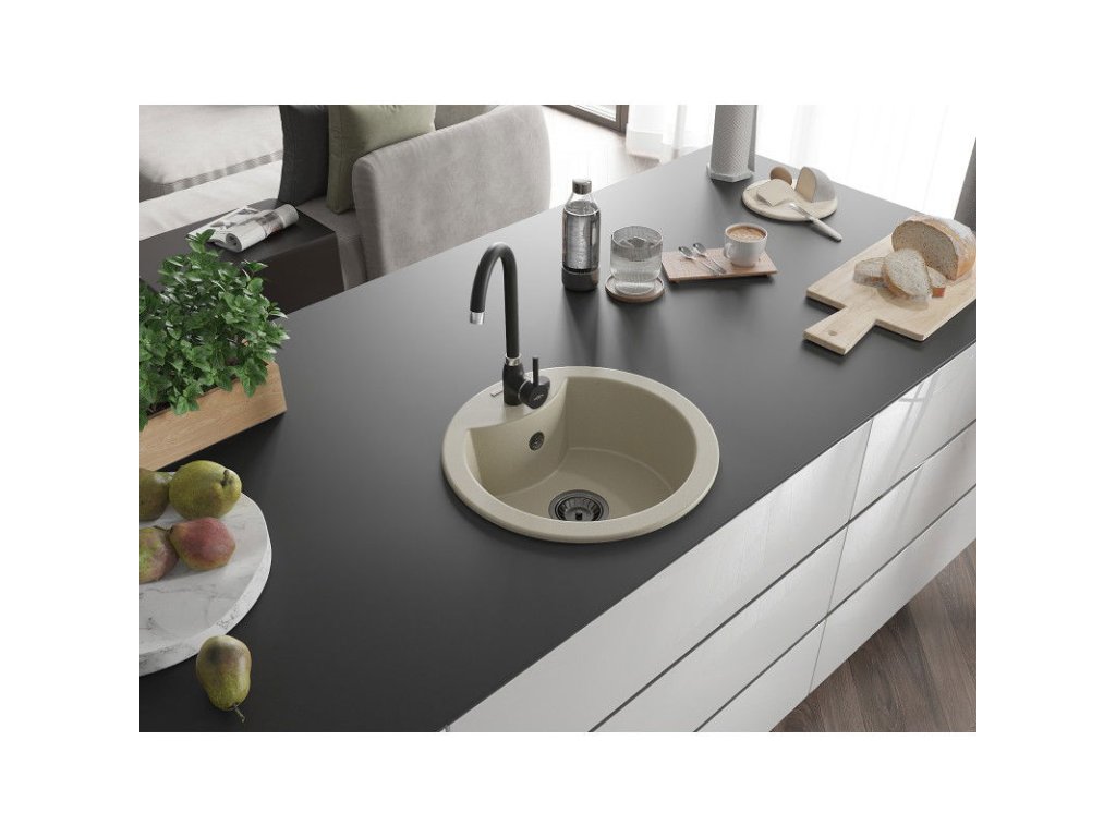 Granitový drez Mexen Diego s 1 misou a kuchynskou batériou Telma, béžový - 6512-69-670200-70