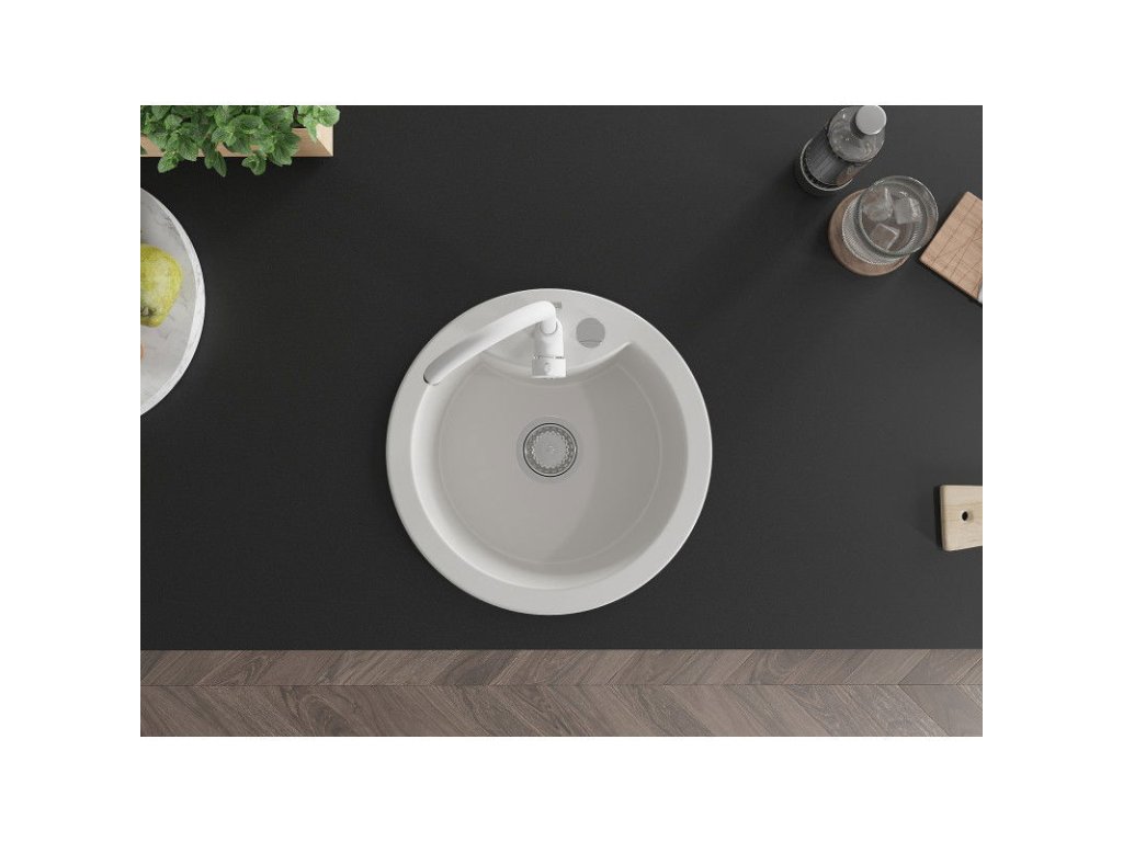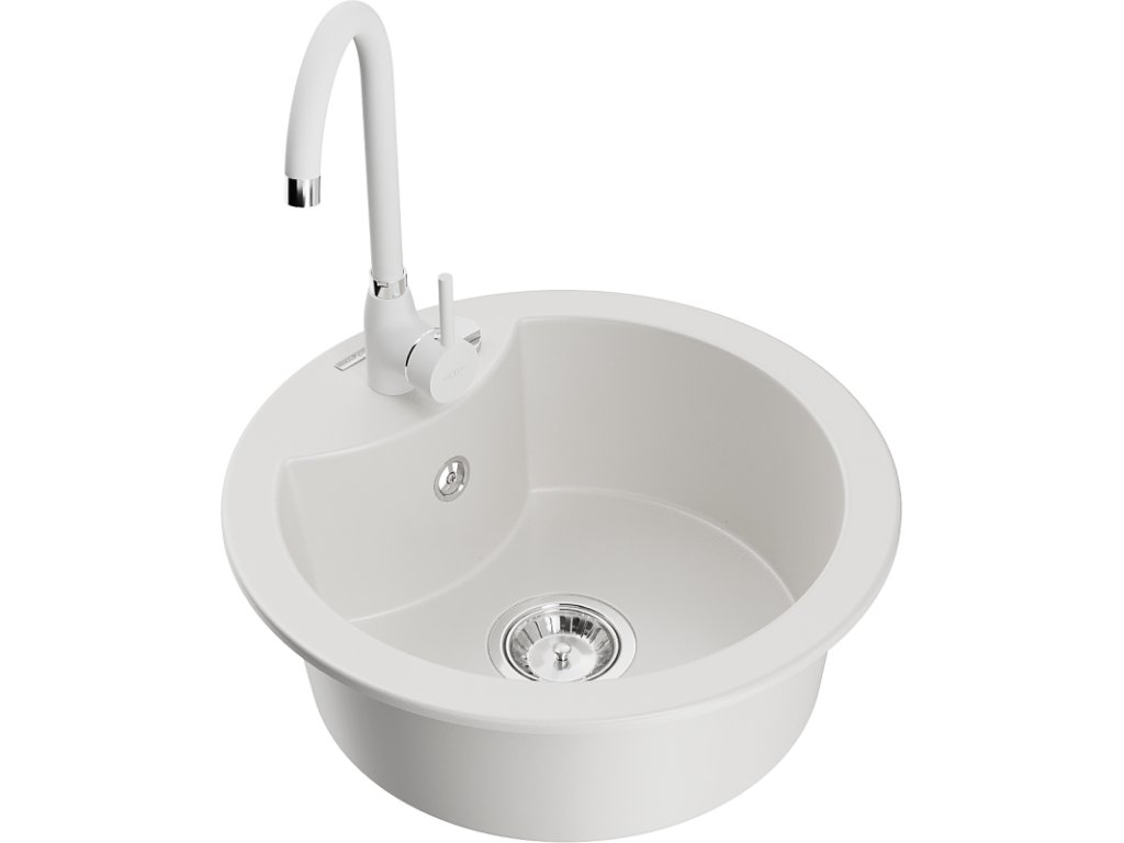 Granitový drez Mexen Diego s 1 misou a kuchynskou batériou Telma, biely - 6512-20-670200-20