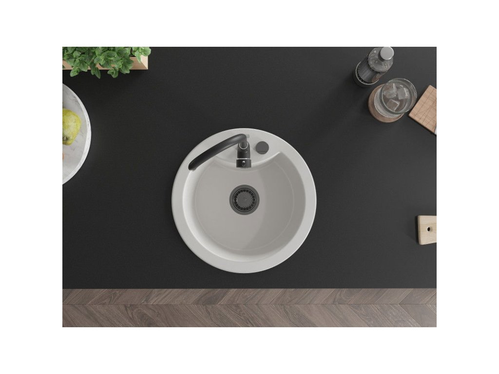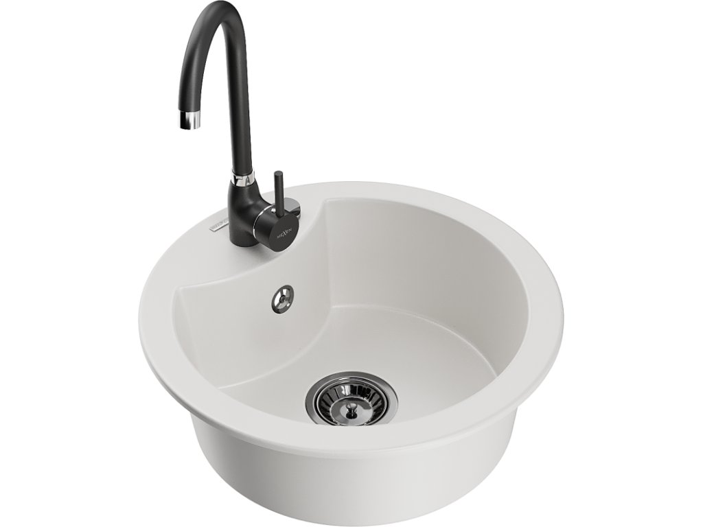 Granitový drez Mexen Diego s 1 misou a kuchynskou batériou Telma, biely - 6512-20-670200-70