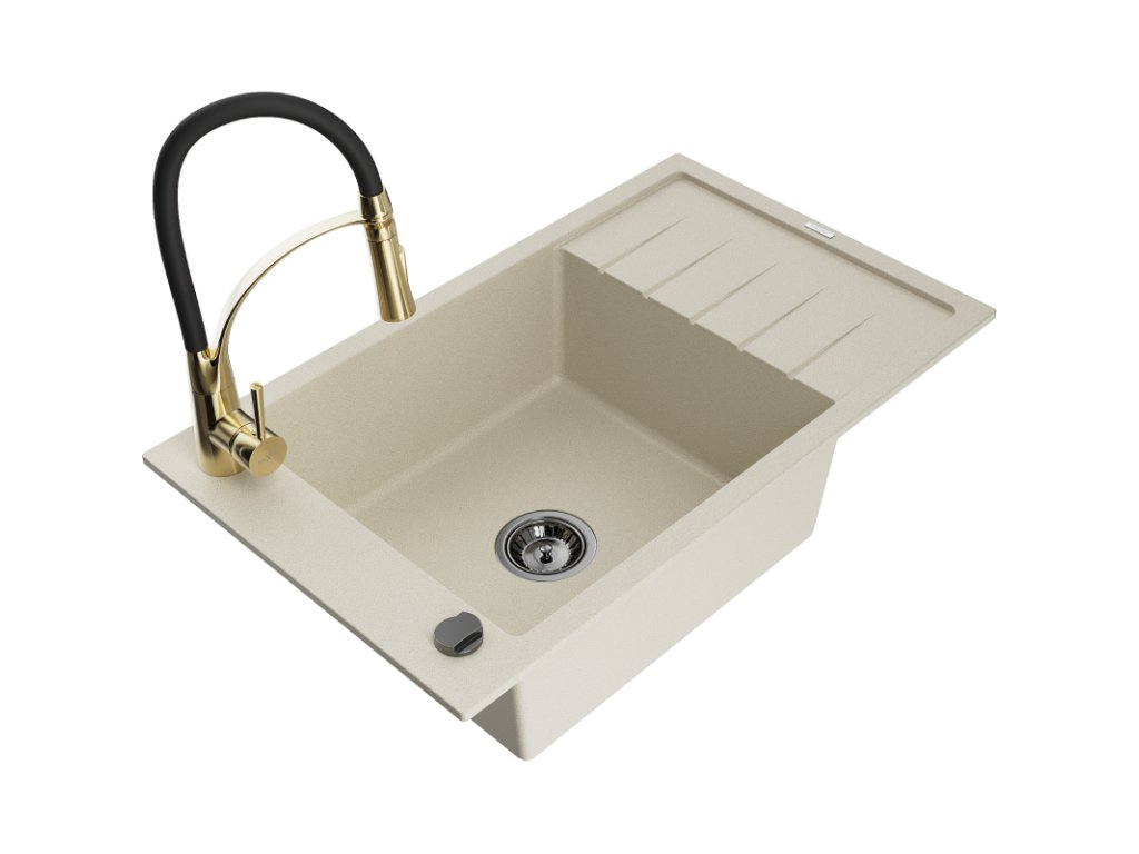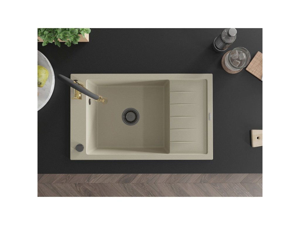 Granitový drez Mexen Elias s 1 misou, odkapávačom a batériou Aster, béžový - 6511-69-73450-57-B