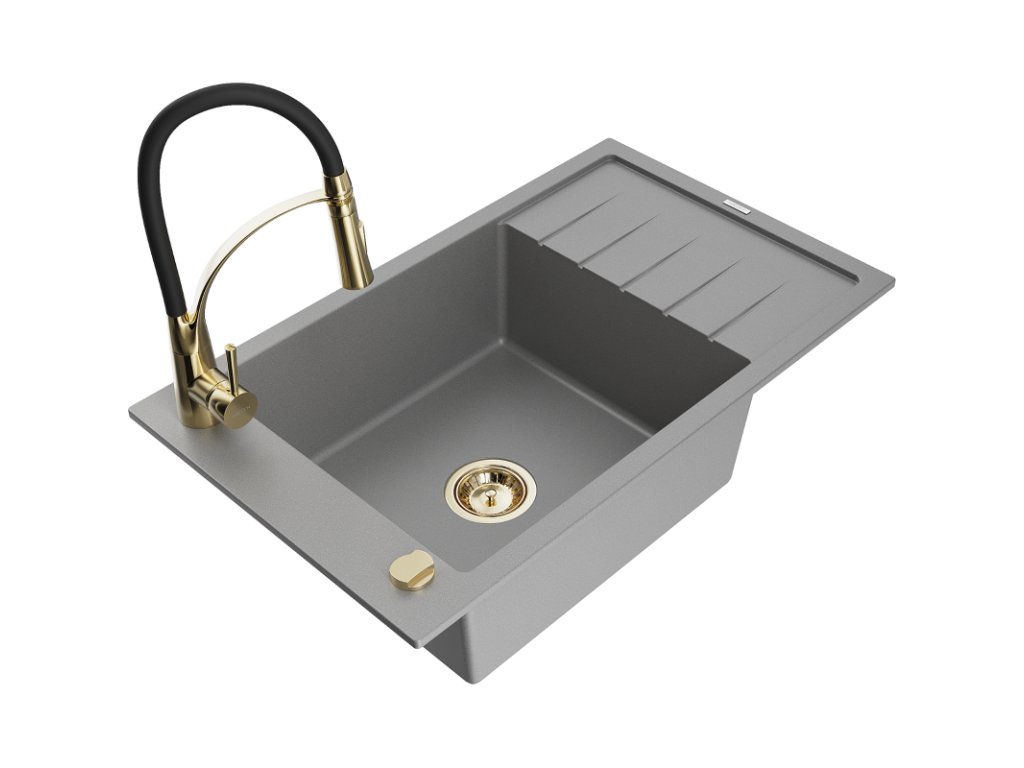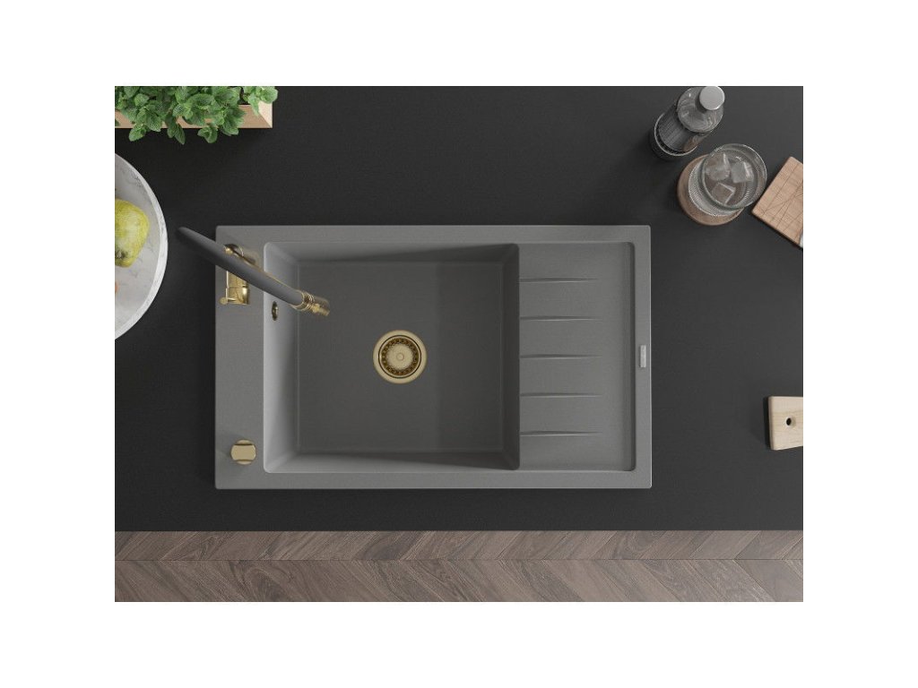 Granitový drez Mexen Elias s 1 misou, odkapávačom a batériou Aster, sivý - 6511-71-73450-57-G