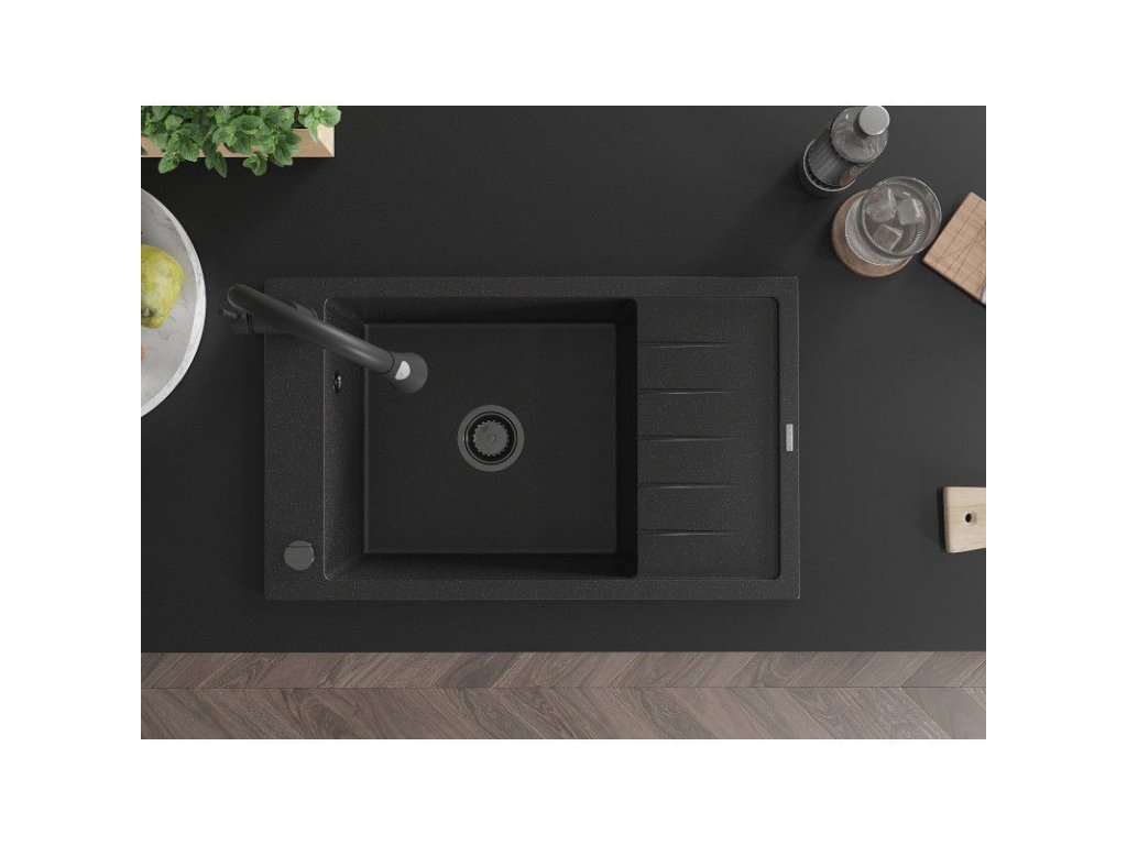 Granitový drez Mexen Elias s 1 misou, odkapávačom a batériou Elia, čierna/strieborná metalíza - 6511-73-670101-70-B