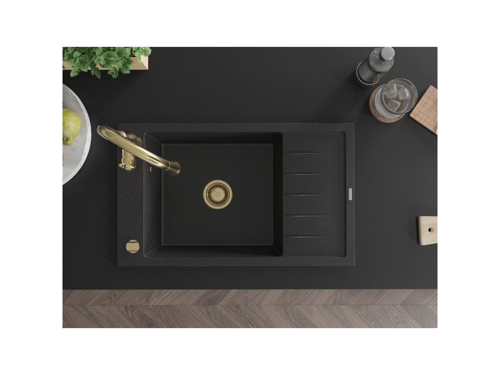 Granitový drez Mexen Elias s 1 misou, odkapávačom a batériou Savita, čierna/strieborná metalíza - 6511-73-672601-50