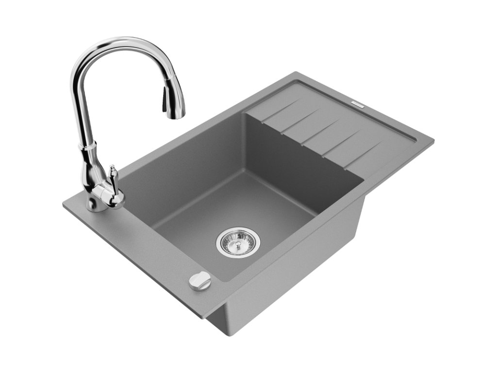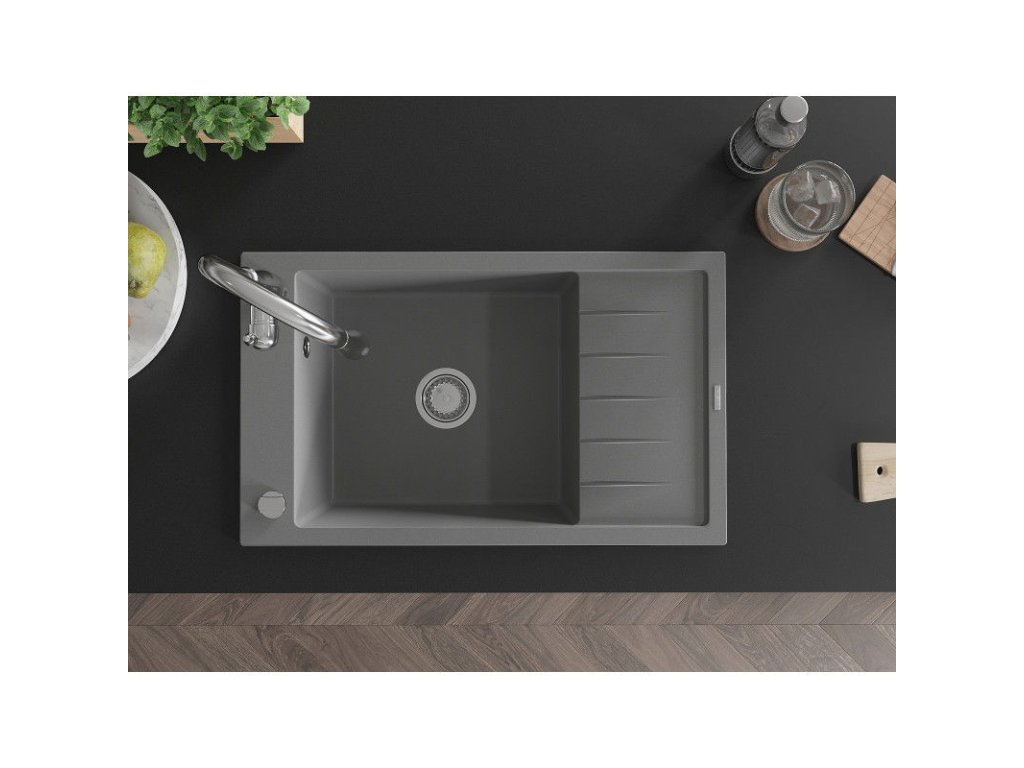 Granitový drez Mexen Elias s 1 misou, odkapávačom a batériou Savita, sivý - 6511-71-672601-00