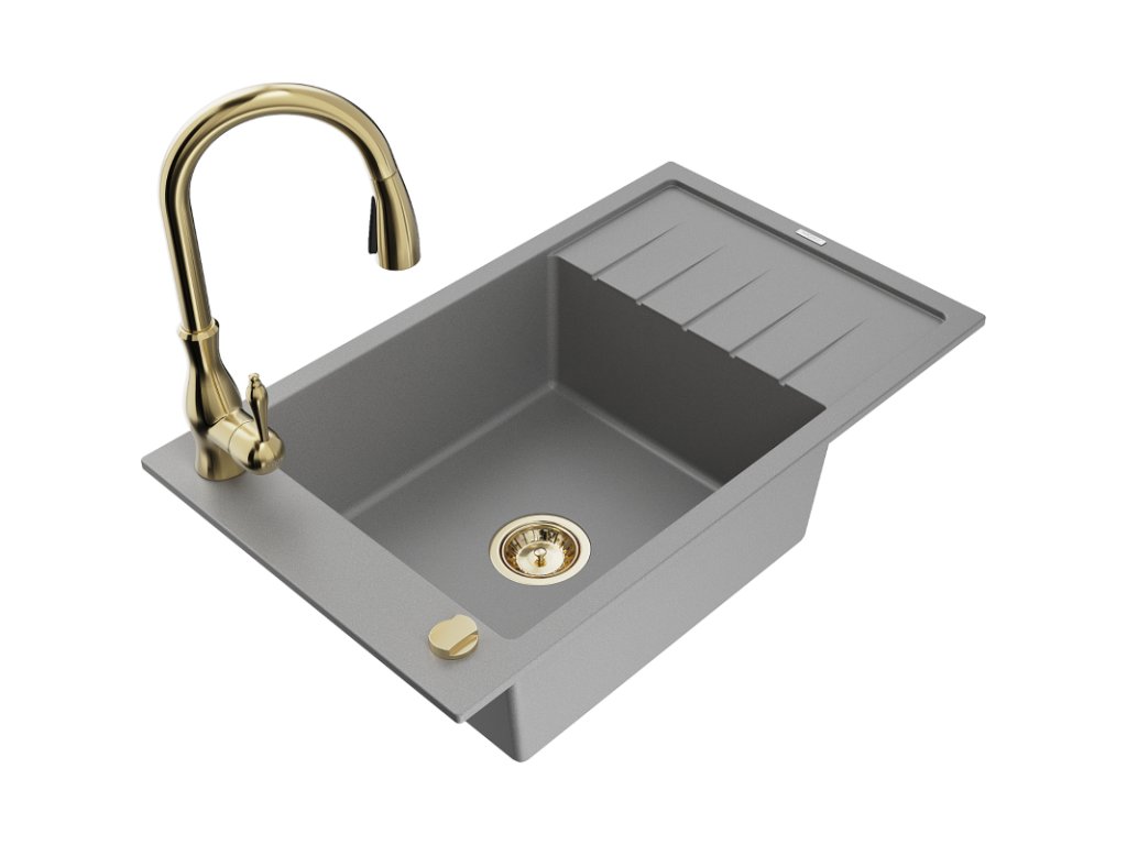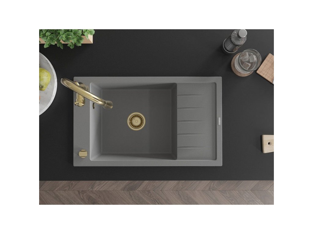 Granitový drez Mexen Elias s 1 misou, odkapávačom a batériou Savita, sivý - 6511-71-672601-50