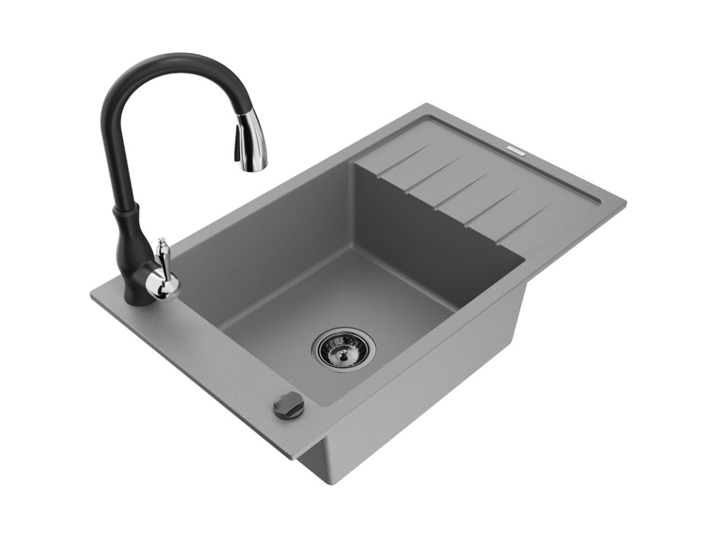 Granitový drez Mexen Elias s 1 misou, odkapávačom a batériou Savita, sivý - 6511-71-672601-70-B
