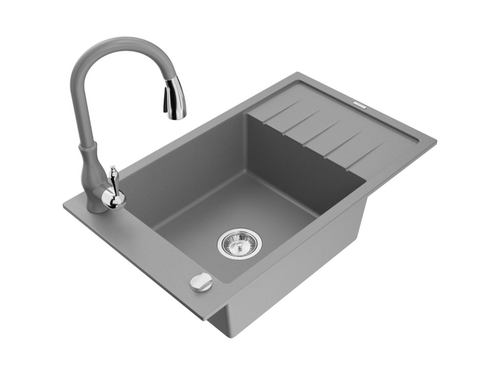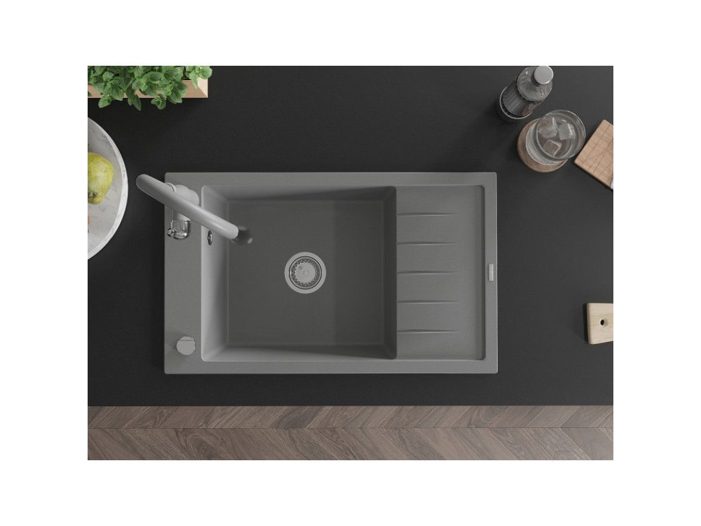 Granitový drez Mexen Elias s 1 misou, odkapávačom a batériou Savita, sivý - 6511-71-672601-71