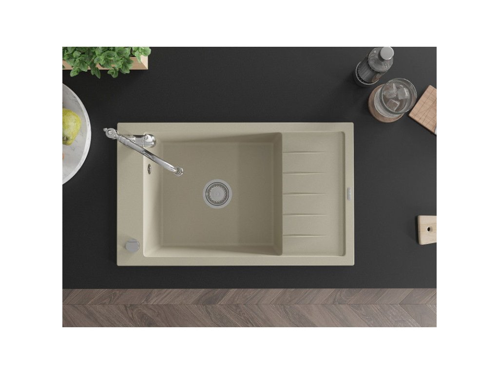 Granitový drez Mexen Elias s 1 misou, odkapávačom a kuchynskou batériou Carla, béžový - 6511-69-670700-00