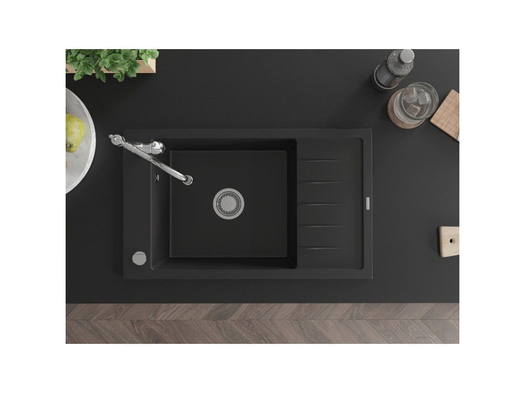 Granitový drez Mexen Elias s 1 misou, odkapávačom a kuchynskou batériou Carla, čierny - 6511-77-670700-00