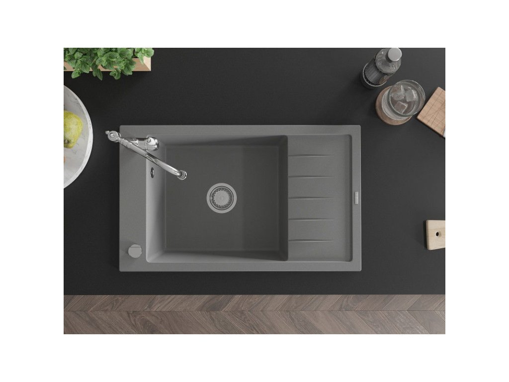 Granitový drez Mexen Elias s 1 misou, odkapávačom a kuchynskou batériou Carla, sivý - 6511-71-670700-00