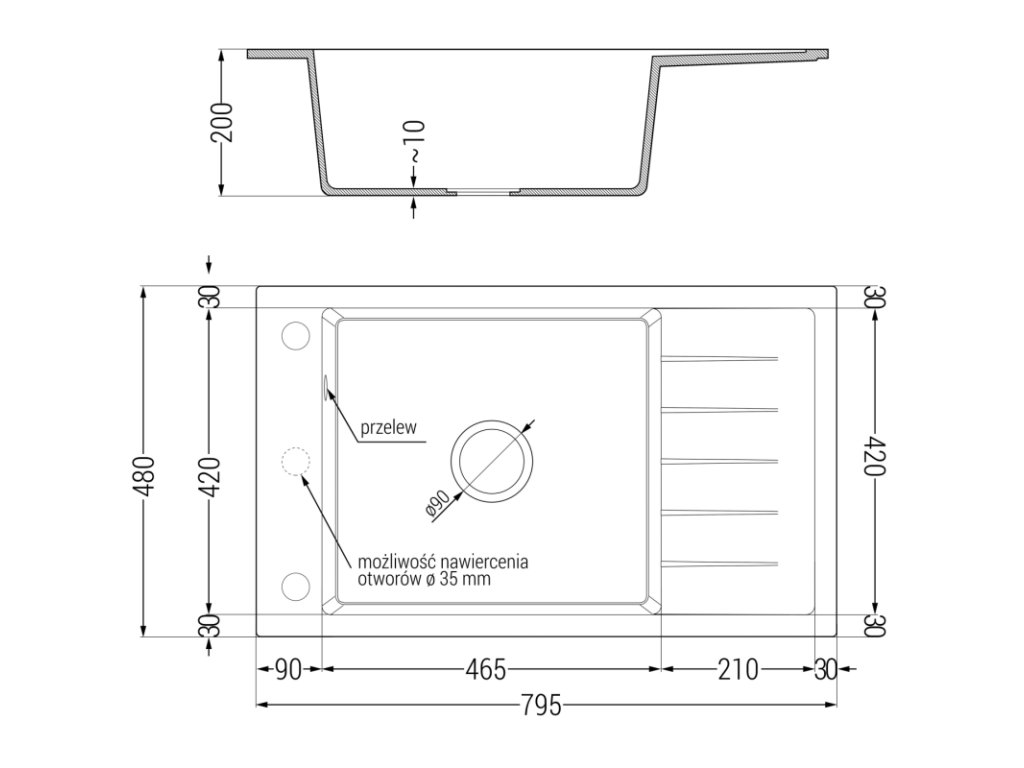 Jeden dodatočný vyfrézovaný otvor ø35 na vlastné dierovanie