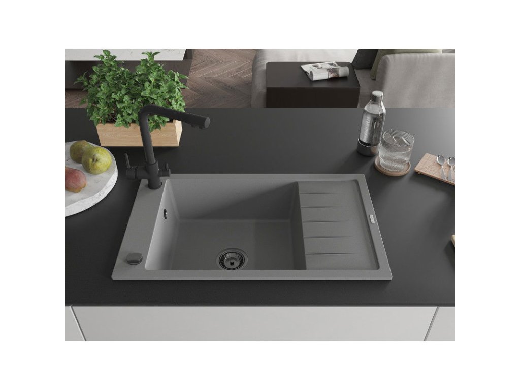Granitový drez Mexen Elias s 1 misou, odkapávačom a kuchynskou batériou Duero, sivý - 6511-71-671600-70-B