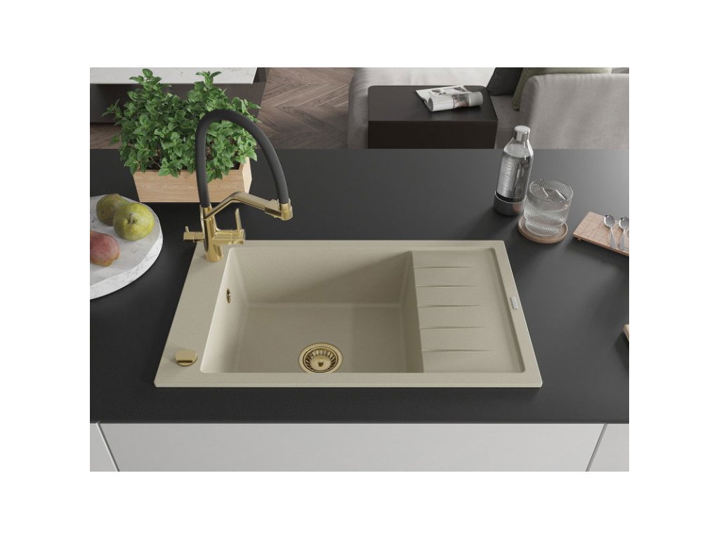 Granitový drez Mexen Elias s 1 misou, odkapávačom a kuchynskou batériou Duo, béžový - 6511-69-671701-57-G
