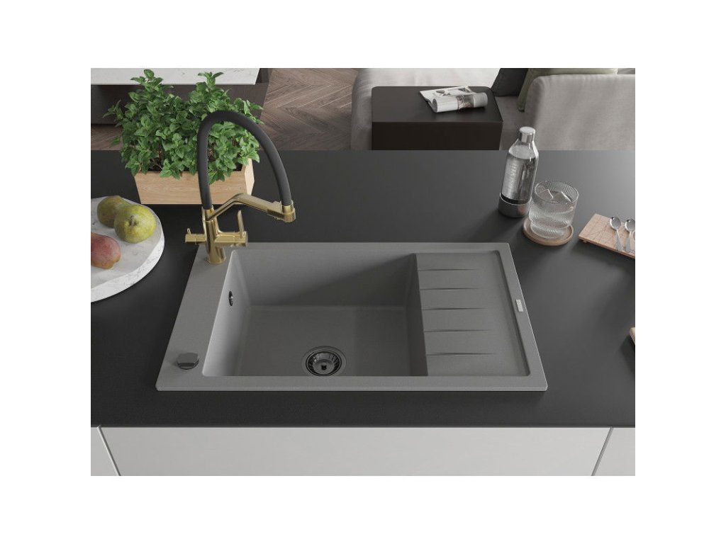 Granitový drez Mexen Elias s 1 misou, odkapávačom a kuchynskou batériou Duo, sivý - 6511-71-671701-57-B