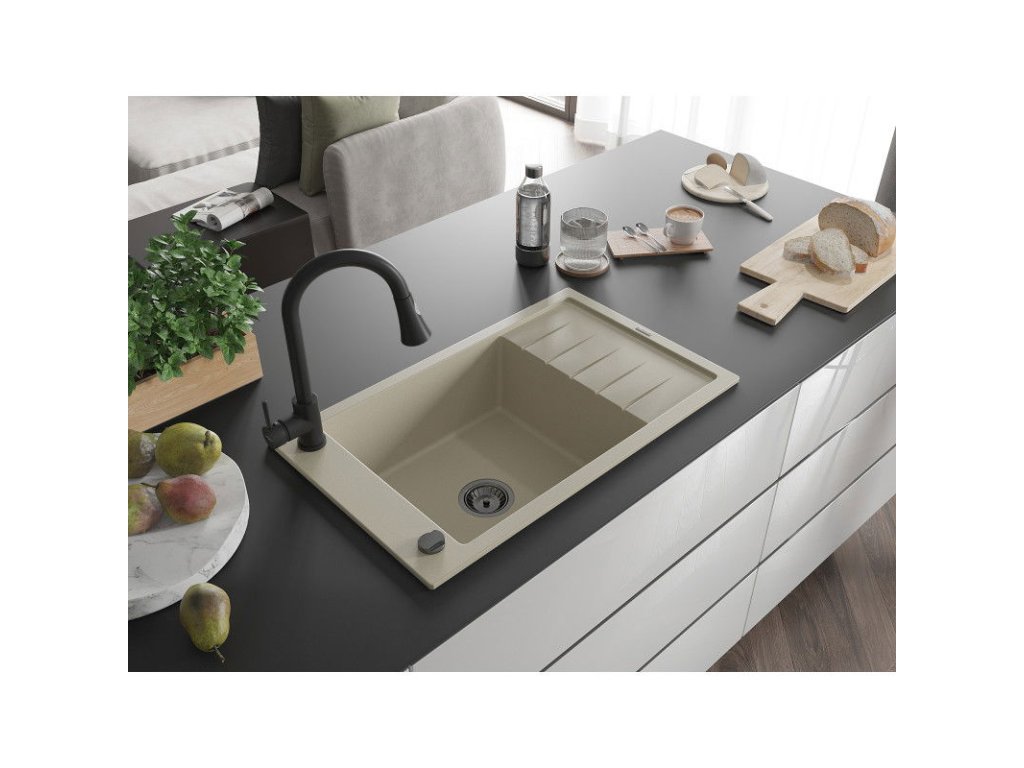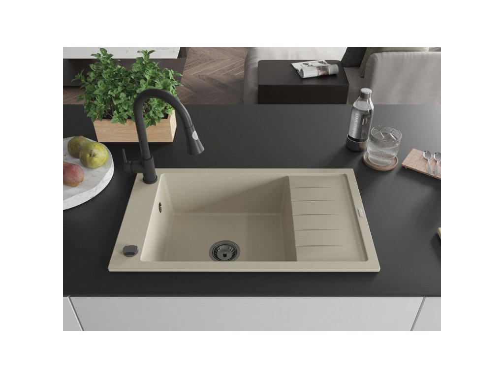 Granitový drez Mexen Elias s 1 misou, odkapávačom a kuchynskou batériou Elia, béžový - 6511-69-670101-70