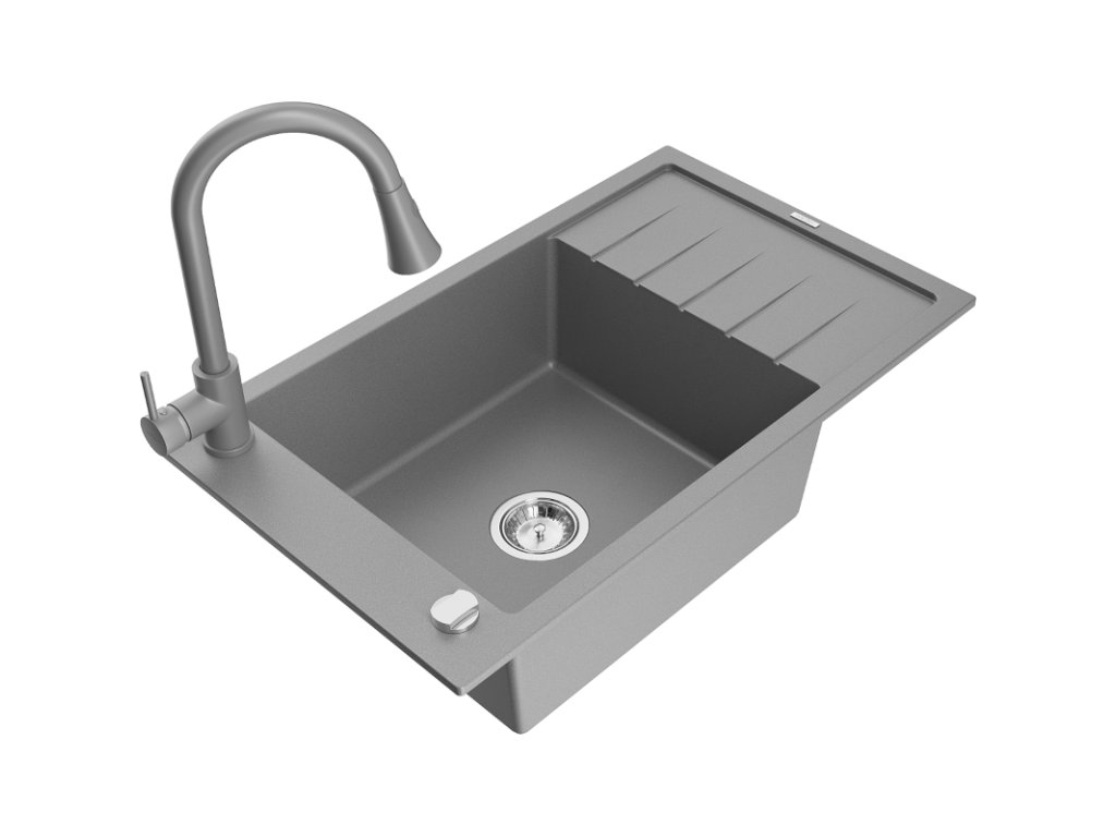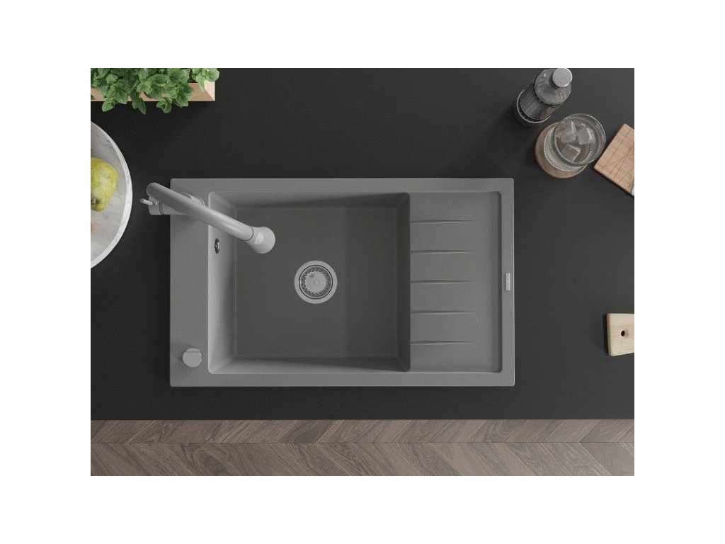 Granitový drez Mexen Elias s 1 misou, odkapávačom a kuchynskou batériou Elia, sivý - 6511-71-670101-71