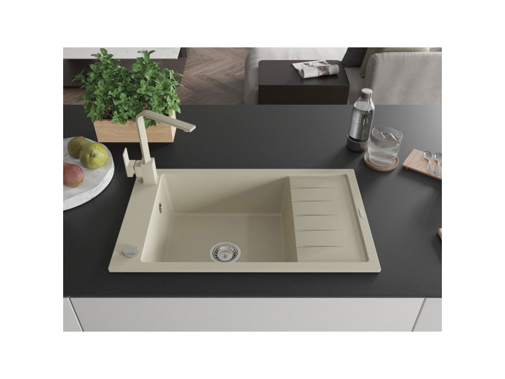 Granitový drez Mexen Elias s 1 misou, odkapávačom a kuchynskou batériou Rita, béžový - 6511-69-670300-69