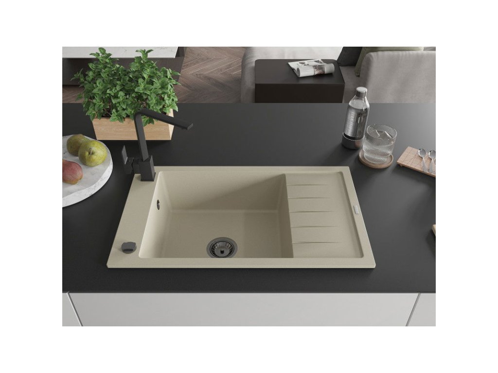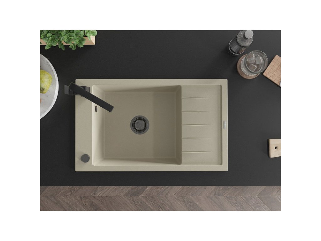 Granitový drez Mexen Elias s 1 misou, odkapávačom a kuchynskou batériou Rita, béžový - 6511-69-670300-70