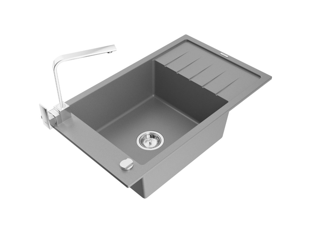 Granitový drez Mexen Elias s 1 misou, odkapávačom a kuchynskou batériou Rita, sivý - 6511-71-670300-00