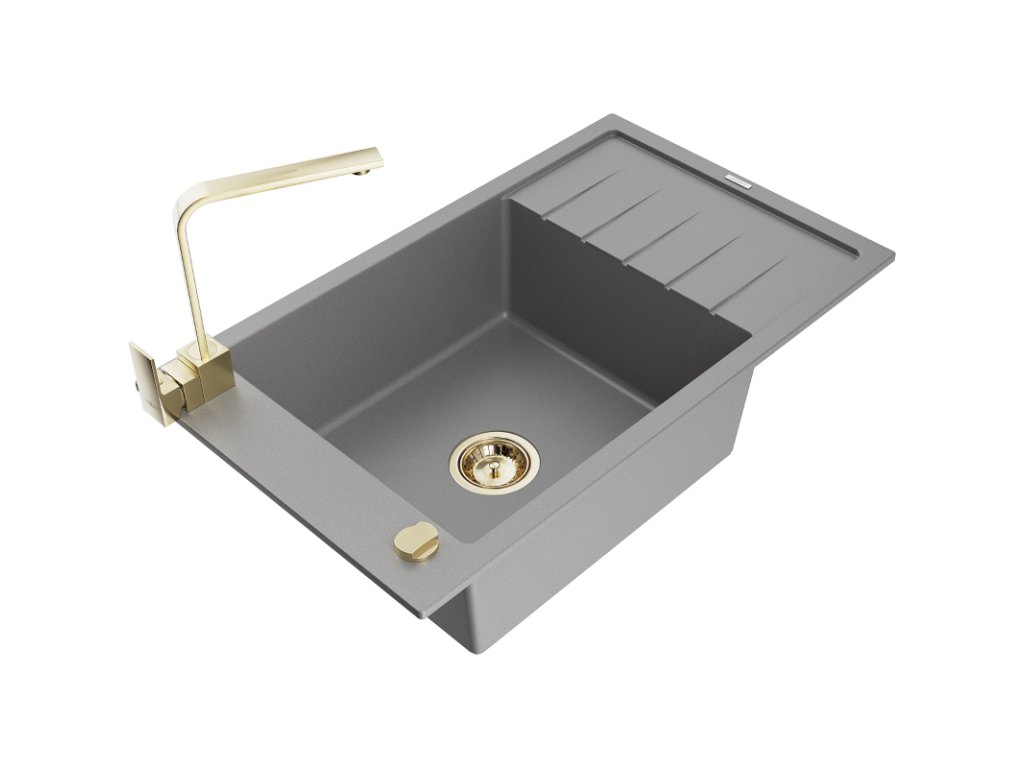Granitový drez Mexen Elias s 1 misou, odkapávačom a kuchynskou batériou Rita, sivý - 6511-71-670300-50
