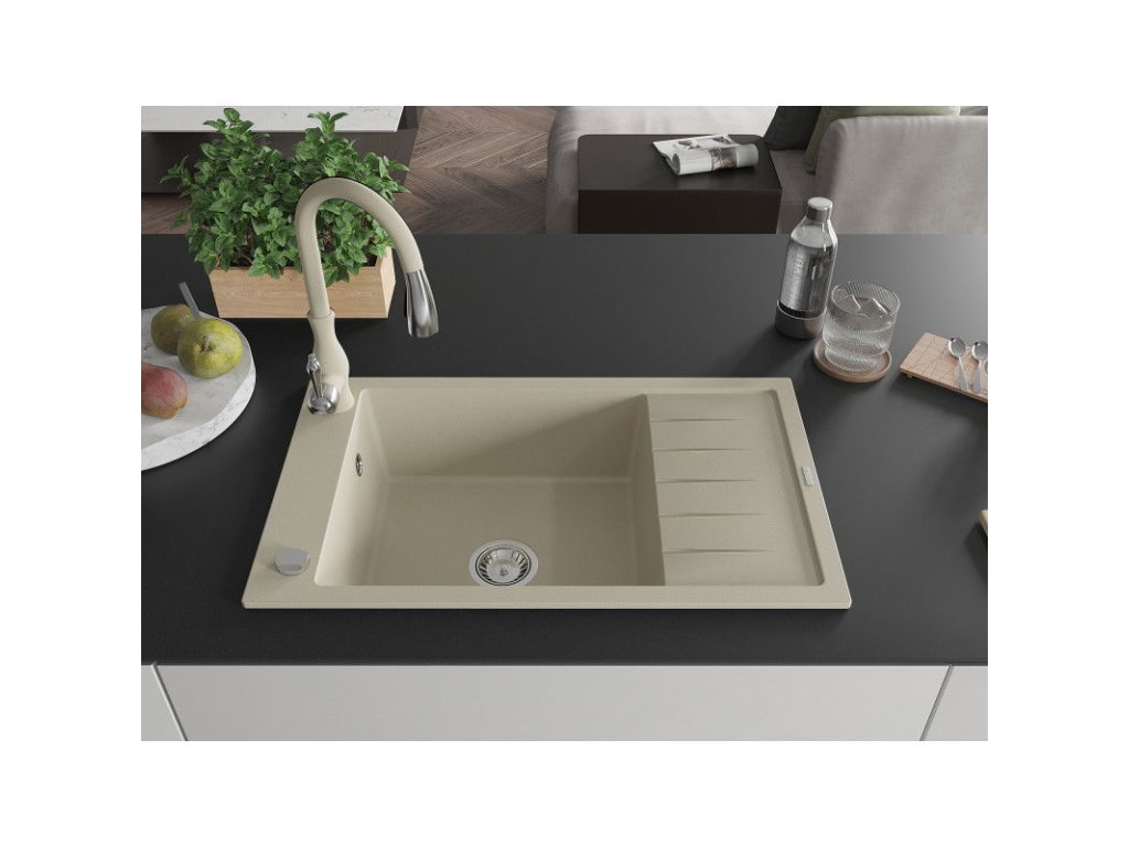 Granitový drez Mexen Elias s 1 misou, odkapávačom a kuchynskou batériou Savita, béžový - 6511-69-672601-69