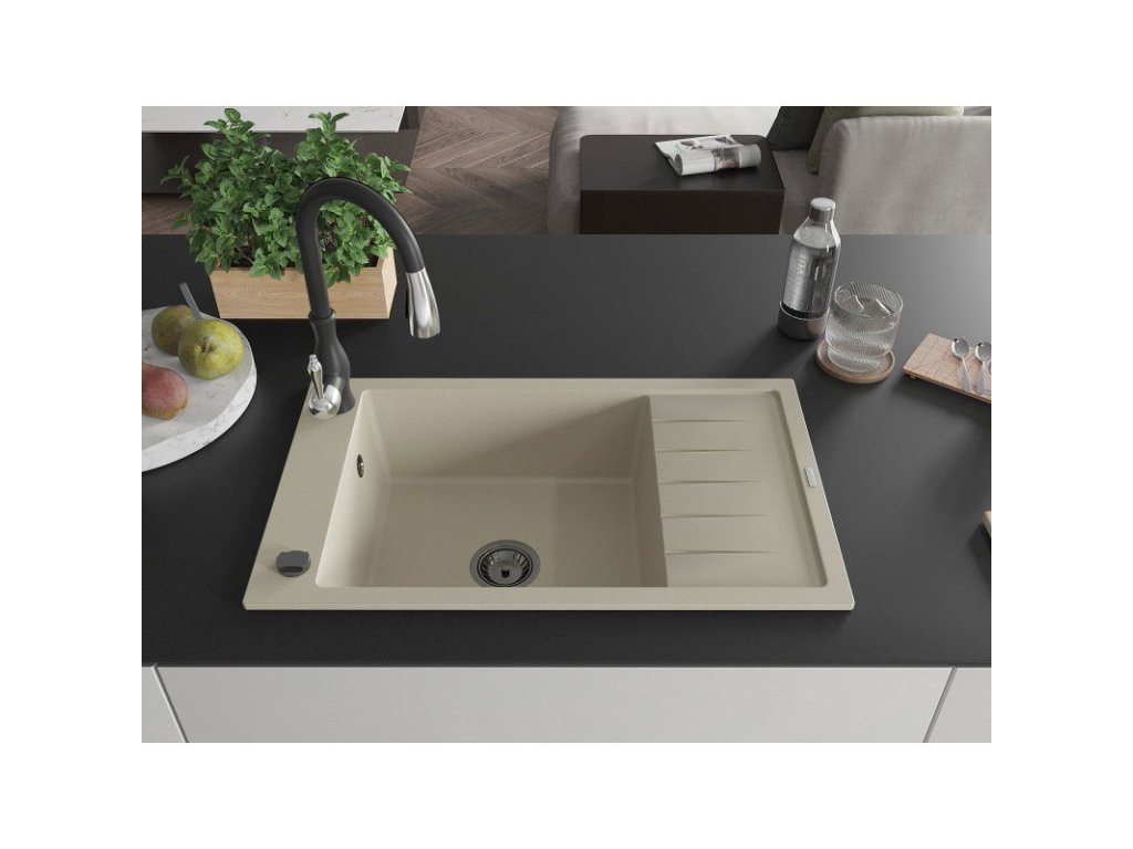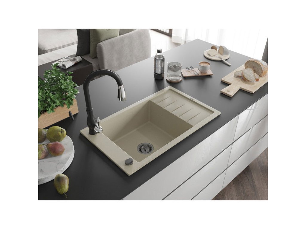 Granitový drez Mexen Elias s 1 misou, odkapávačom a kuchynskou batériou Savita, béžový - 6511-69-672601-70