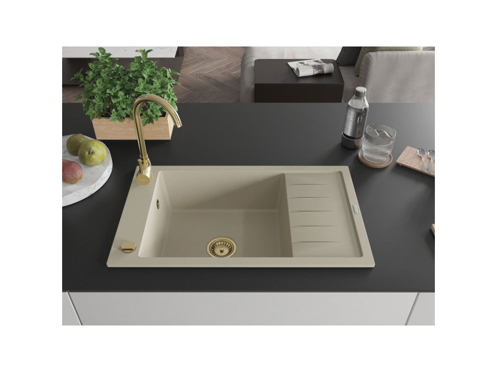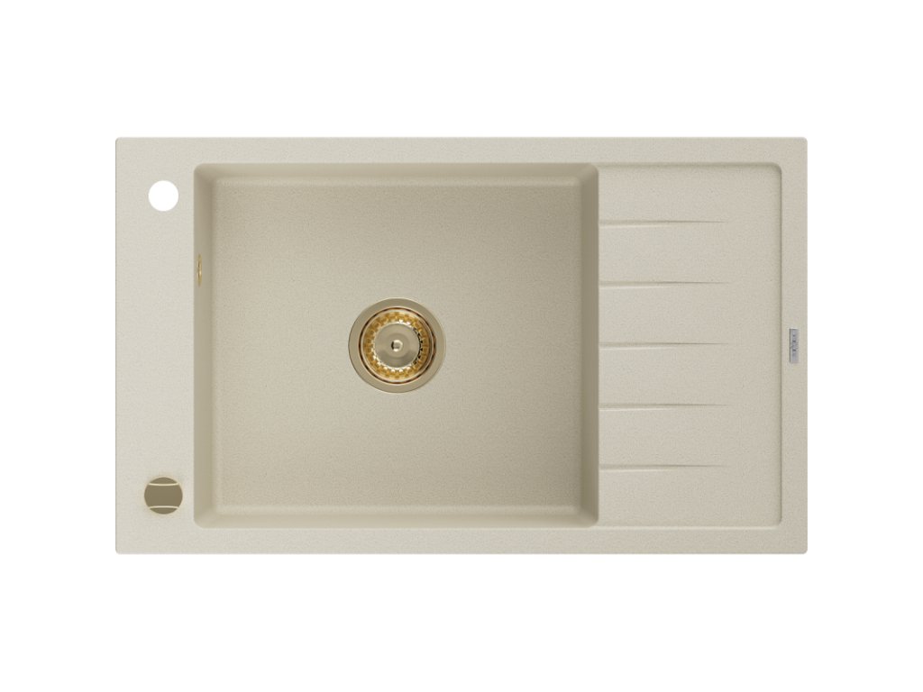 Granitový drez Mexen Elias s 1 misou a odkapávačom 795 x 480 mm, béžový, zlatý sifón - 6511791005-69-G